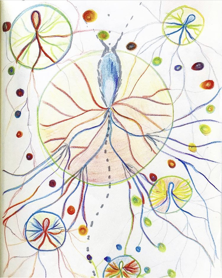 In my research methodologies I mostly work with movement research and improvisation, based in practical anatomy and Authentic Movement Practice. Important role in my understanding and approach to working with my own body plays Body Mind Centering Technique, which offers methods on working with past potentialities of the body. It is a technique that accompanied my development as a dancer in a great way, and in which recently a began to classes with founder of it Bonnie Beinbridge Cohen. I am a movement practitioner. I mix it with the Qi Gong approach to anatomy and energy aspects of the body. This particular approach offers me a guidance to interconnecting my fascination of Nights Sky and its union with human body. I work a lot with embodied imagination as a way of producing material, practising unexpected ways of moving and allowing the environment to move my dance. I find that here is where the concepts of Vandana Shiva explain how I perceive the co-responsibility of the inter-species physicality.